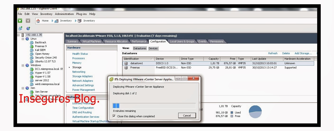 En el último episodio de Inseguros configuramos un entorno con dos Host ESXi 5.5 compartiendo almacenamiento proporcionado por una SAN virtual gestionada por FREENAS.