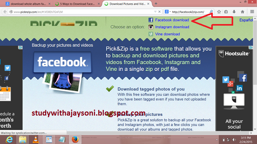 4) simply select the photos or album you want to download ,you download your friends photo album also. so enjoy this trick.