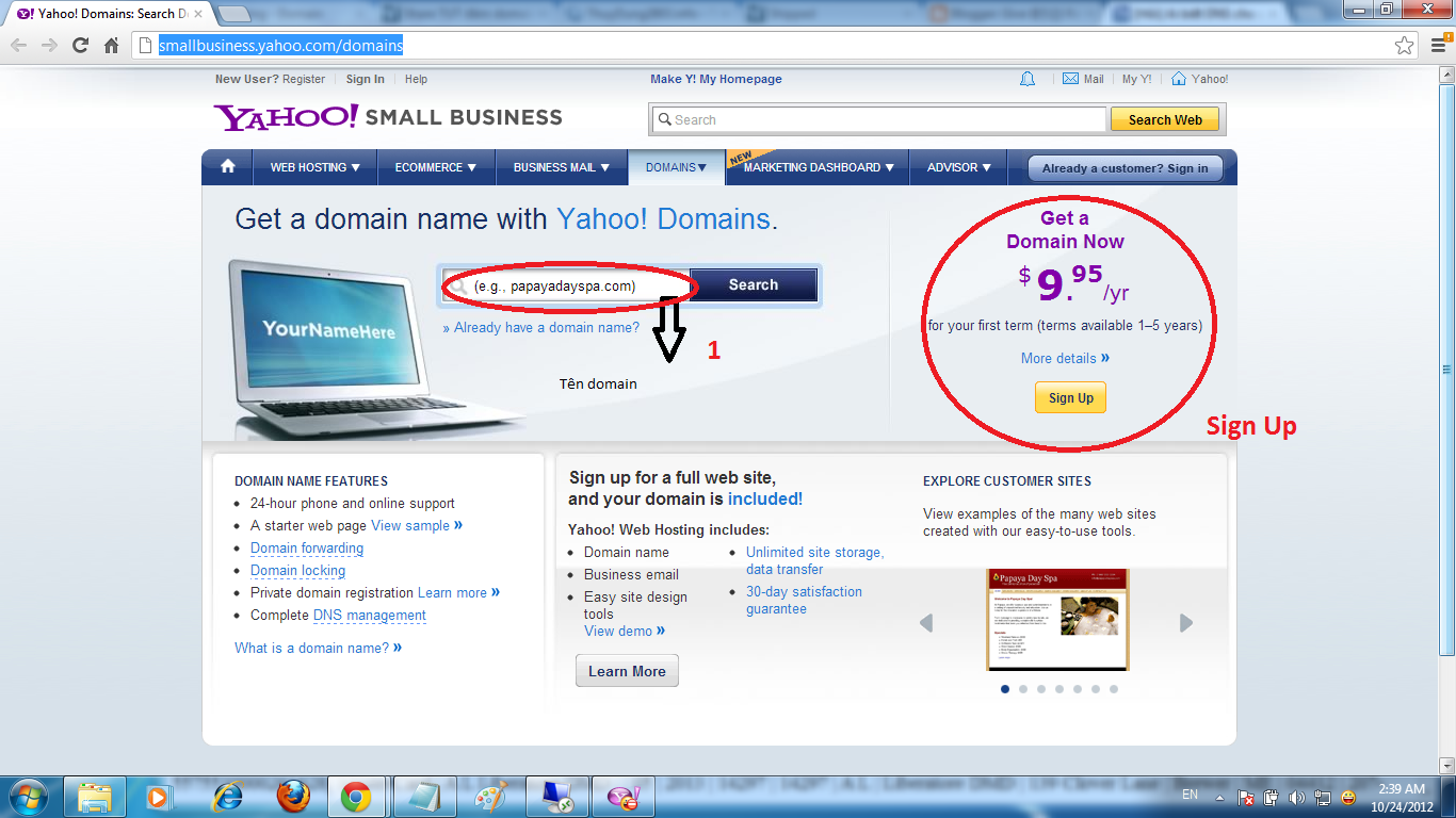 Làm thôi nào:) đầu tiên vào trang này http://smallbusiness.yahoo.com/domains