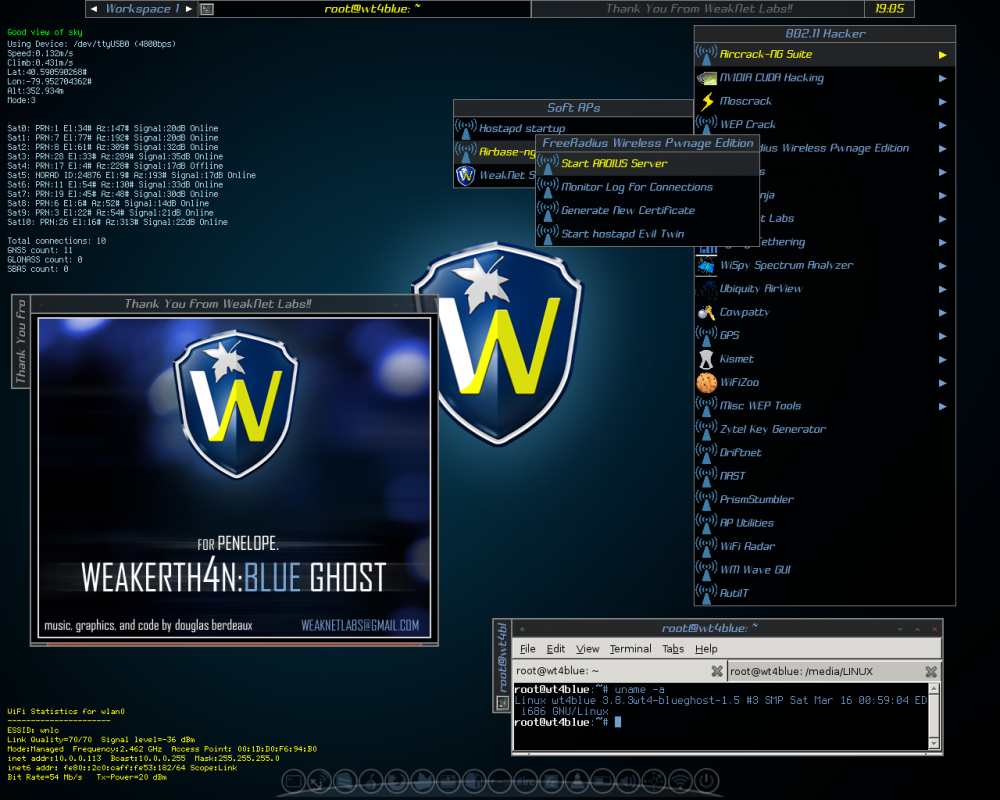 Weakerth4n is a penetration testing distribution which is built from Debian Squeeze.For the desktop environment it uses Fluxbox.This operating system is ideal for WiFi hacking as it contains plenty of Wireless tools. It has a very well maintained website and a devoted community. Built from Debian Squeeze (Fluxbox within a desktop environment) this operating system is particularly suited for WiFi hacking as it contains plenty of Wireless cracking and hacking tools.