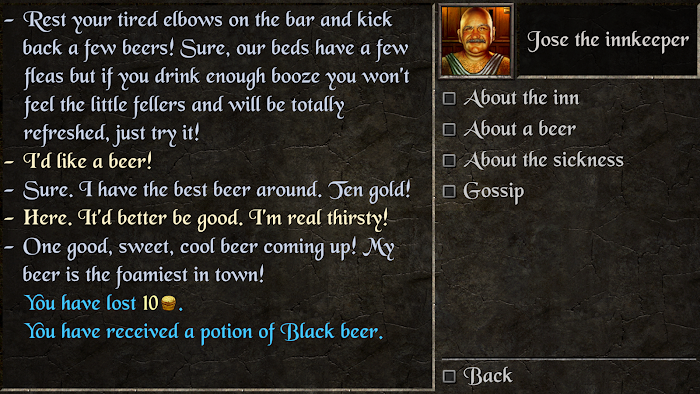 Choose from five customizable races and an array of skills, weapons, armor and enchantments, and explore a huge world of four cities and a wilderness of mountains, caves, lakes and forests – full of mystery, magic and intriguing challenges. Meet the many inhabitants, each with its own agenda and attitude towards your character. Some will be helpful, some greedy or lascivious or just plain mean. You will have many choices, including some that may place you against the law, along your way to the dramatic ending of your own choosing.