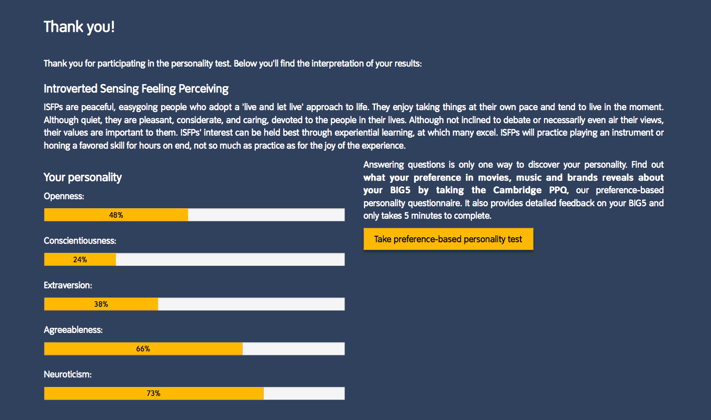 | [1] | ^ | The Psychometrics Centre: My personality |